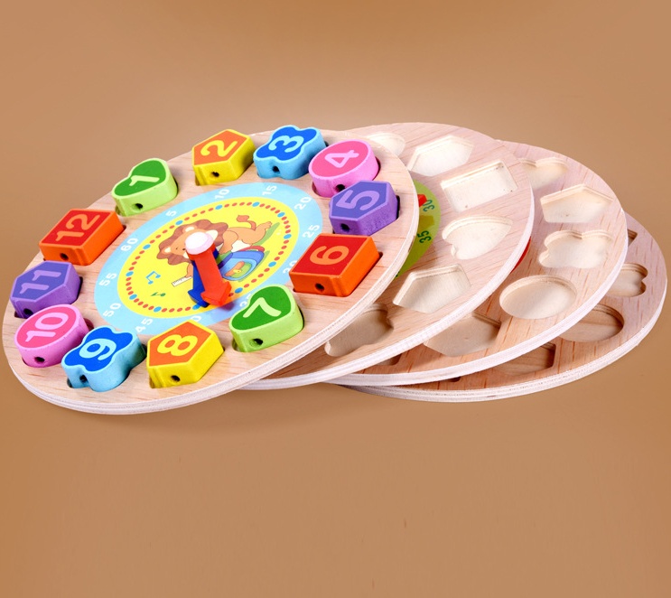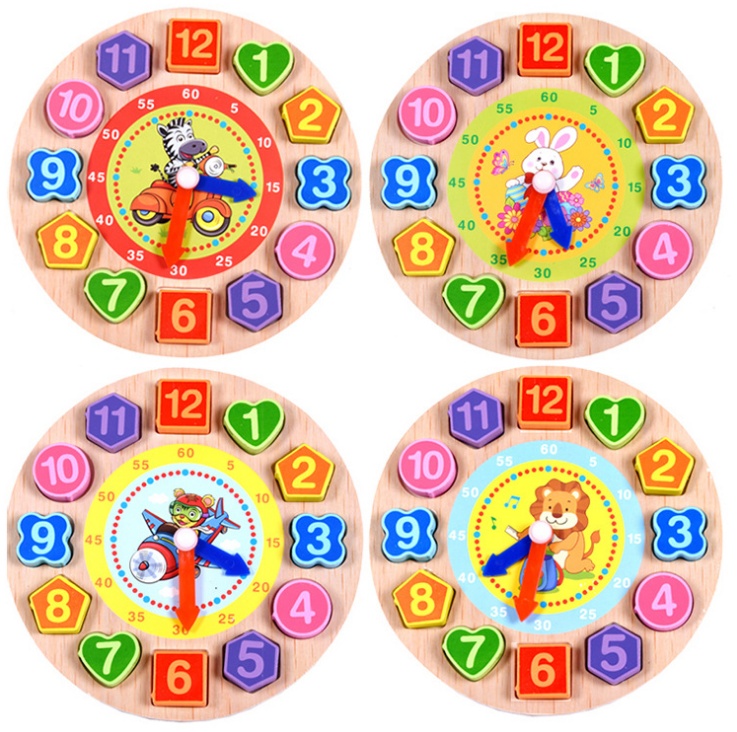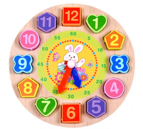 1. The puzzle consists of two rotatable hands, twelve numbers and twelve object blocks corresponding to the numbers. Each piece is a separate piece. The baby puts it into the corresponding position according to its shape, number and color. Learn the numbers and know the clocks.