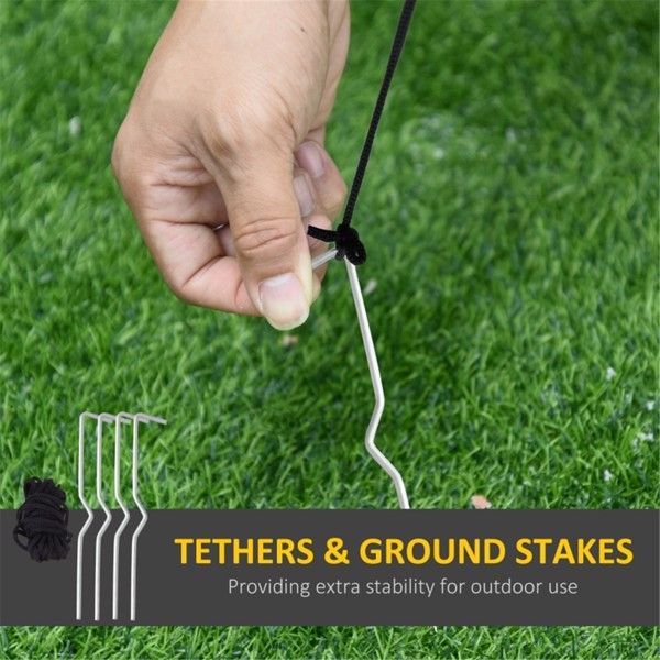 - – Includes four ground stakes and two drawstrings to help keep it anchored on windy nights