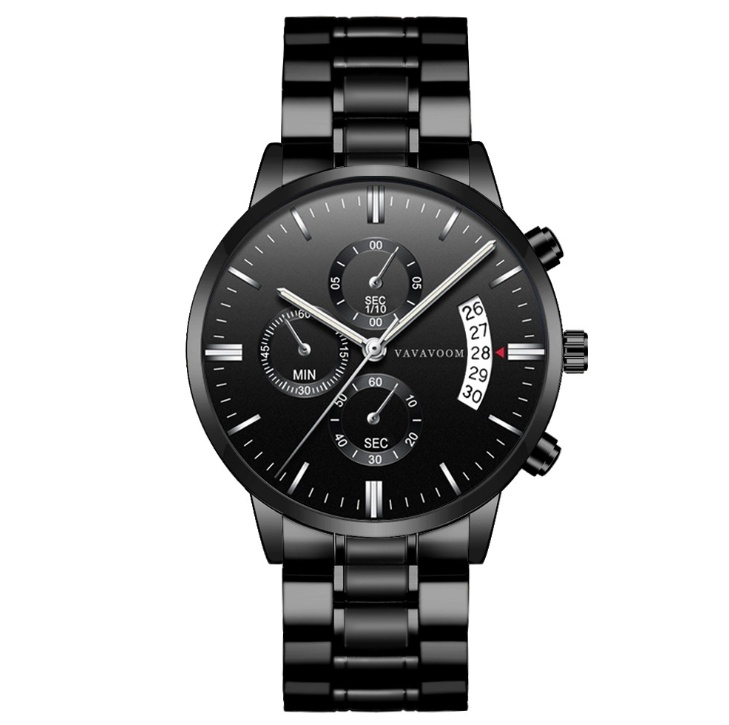 Men”s Stainless Steel Watches with Business Leisure Calendar Quartz Watches Waterproof Black Refined Steel Watches
