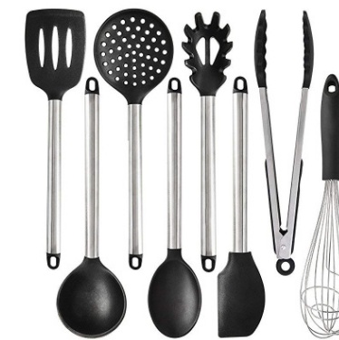 A wonderful set, I'm delighted, silicone and stainless steel, I did not regret that I ordered here, and not at home, there is a similar set of Berner, only trochets are more expensive, the blade of course is bent and sorry there is no push for potatoes in the kit, all devices are good, the whisk handle is plastic, For comparison, I photographed the appliances with a dining room and a teaspoon, it was packed perfectly, a blown air bag, thank you dear Chinese friend and don't get sick there! 😉
